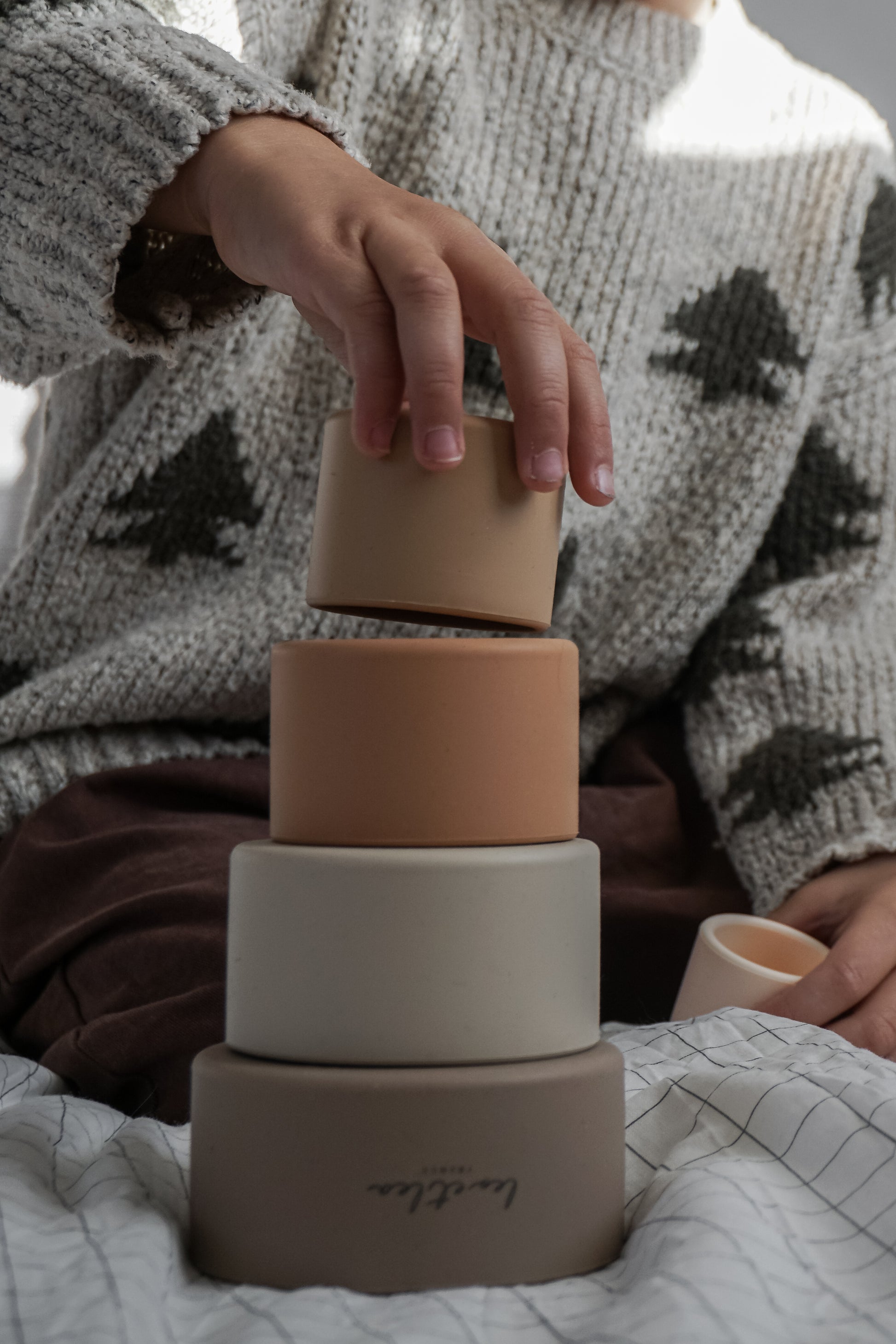 Agréable à manipuler, le Cup Stacker est un jouet en silicone - exempt de plastique et de substances indésirables.